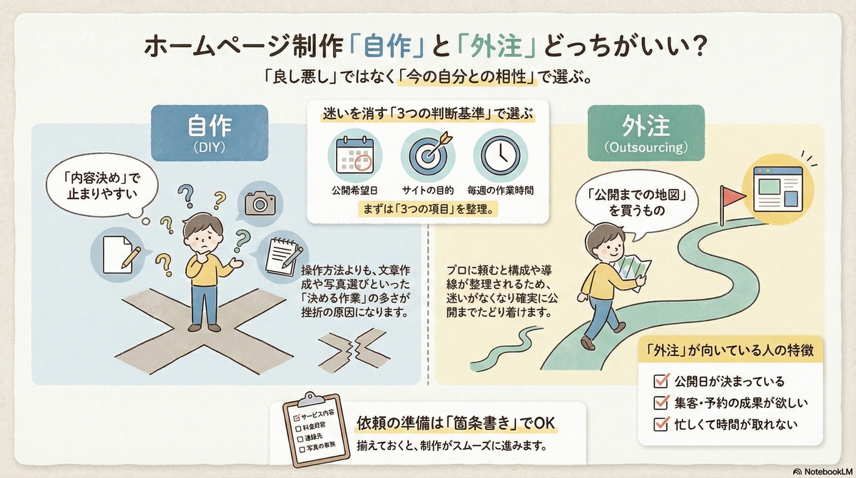 ホームページ制作【自作と外注どっちが良い?と、迷う方へ】選び方・考え方を解説