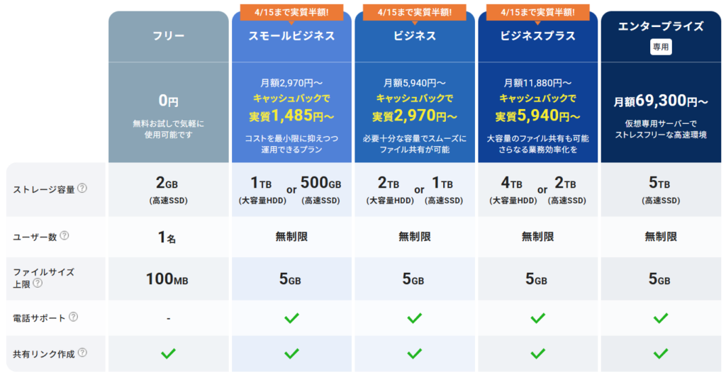 1ファイルあたりのサイズ上限はフリーの100MBから5GBへ拡張されます。