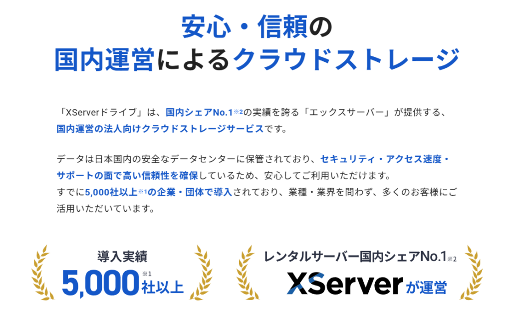 XServerドライブは、国内シェアNo.1のレンタルサーバー会社・XServerが提供するクラウドストレージです。