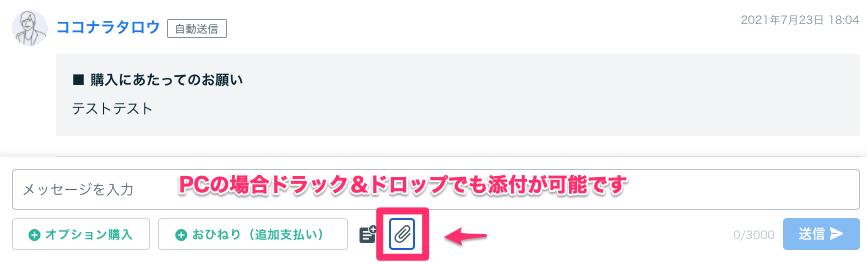 ココナラのトークルーム内では、一度のメッセージ送信で最大5つ(上限200MB)までファイルを添付することができます。