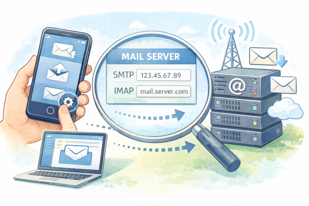 ご自身のスマートフォンやメールソフトでメールを送受信する場合、端末側で接続先のメールサーバーを指定する必要があります。